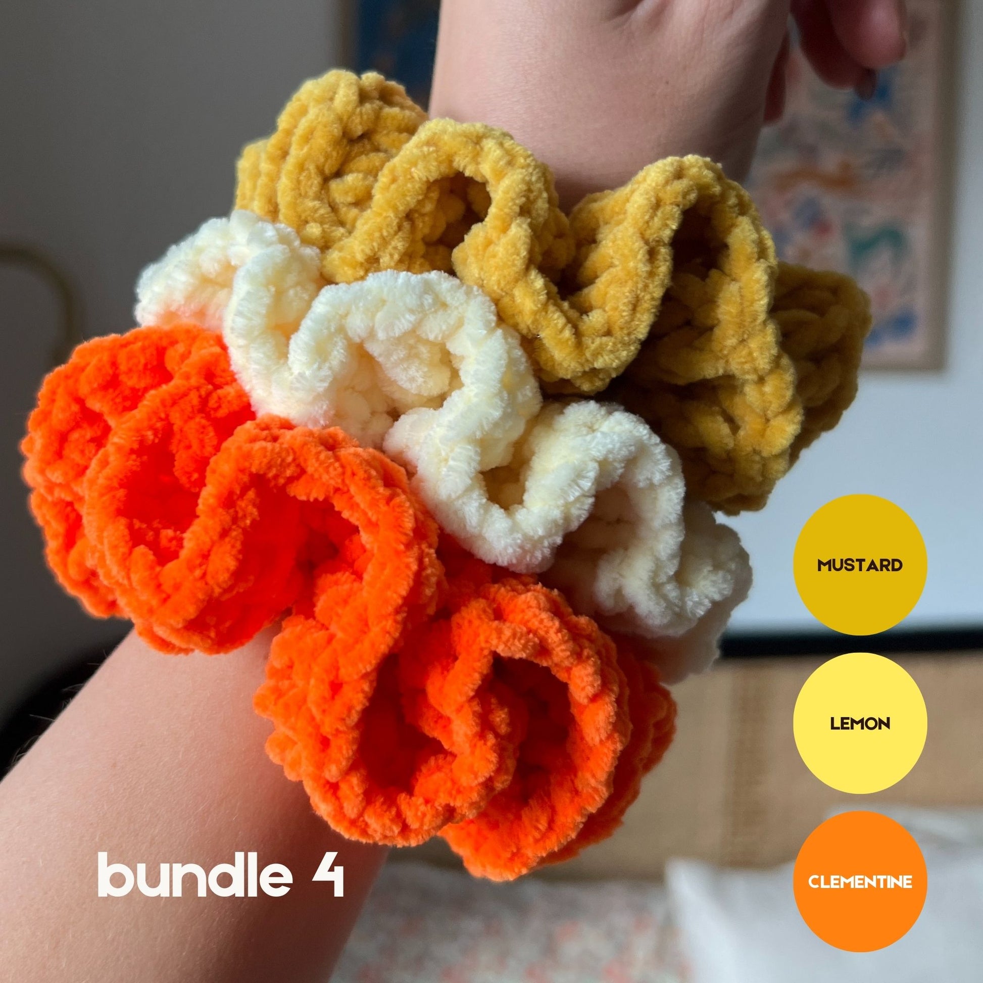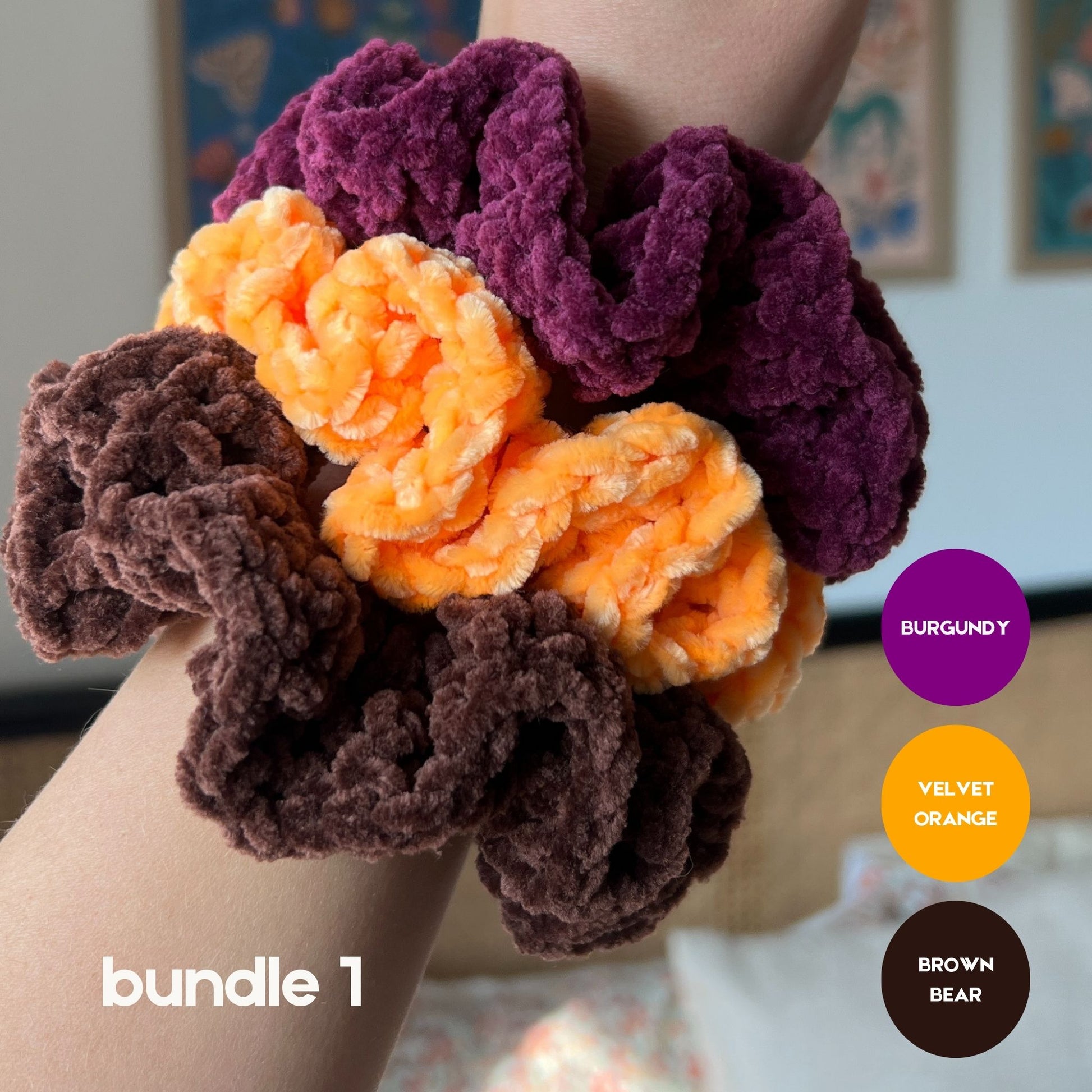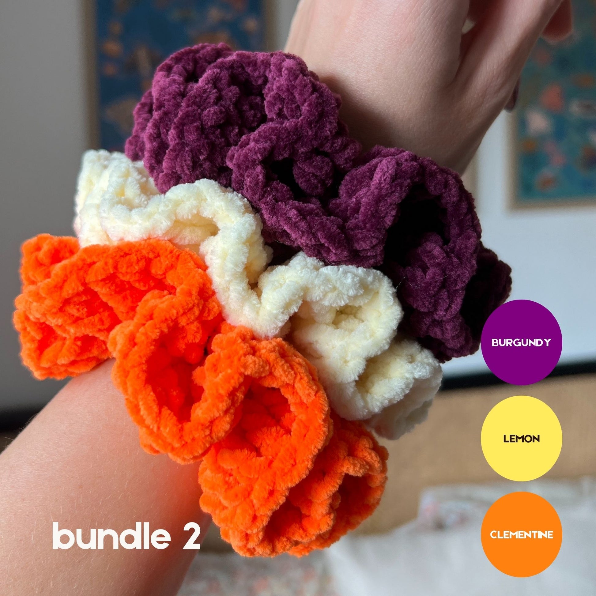 Spoil your hair with the cosiest, prettiest crochet plush scrunchies