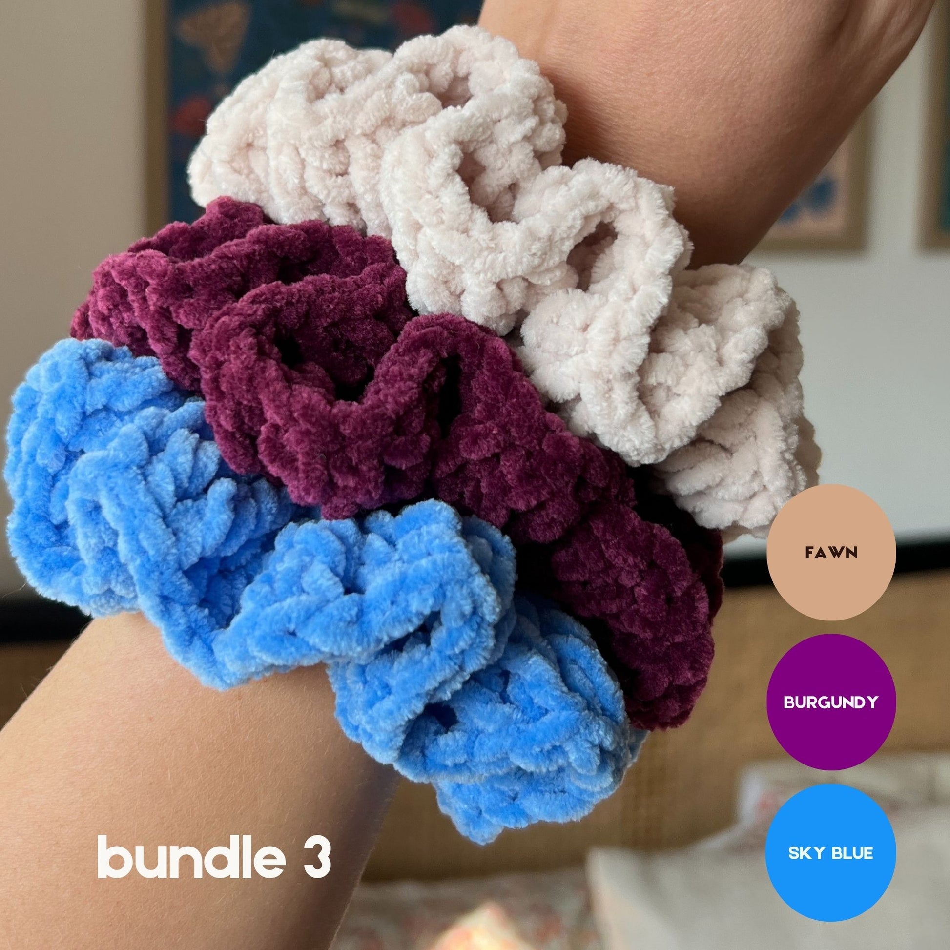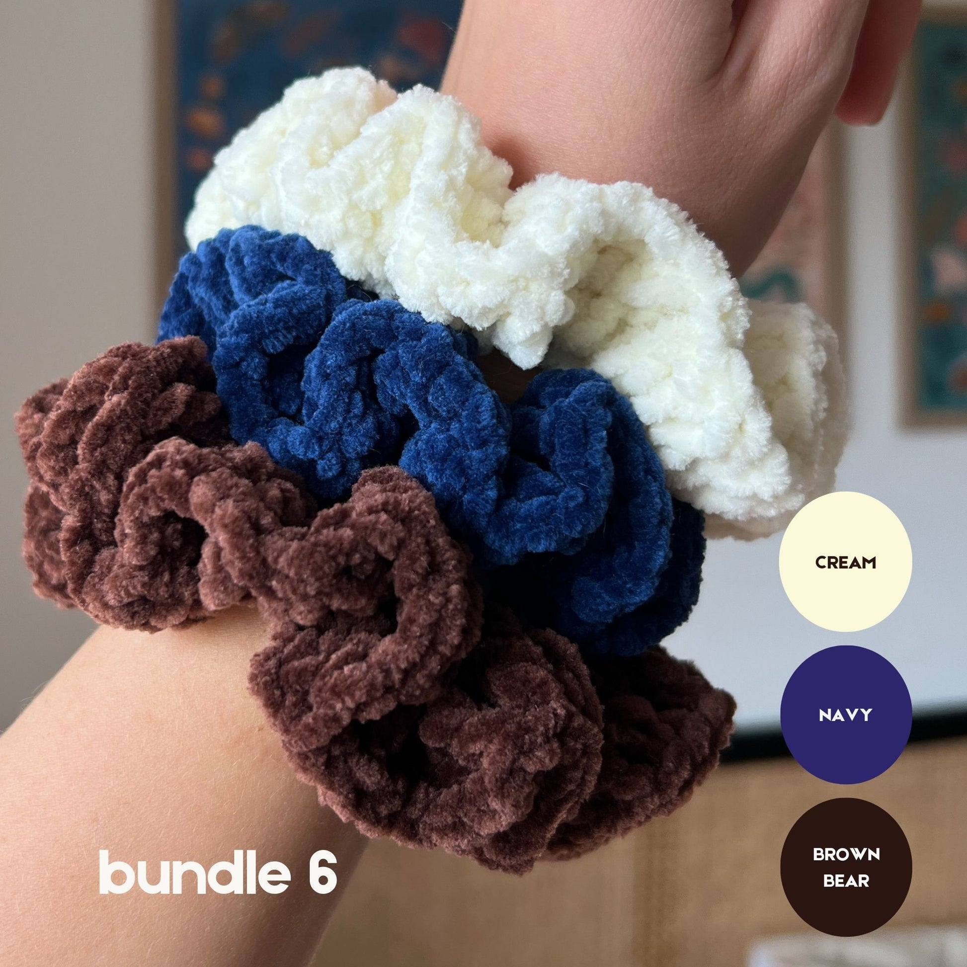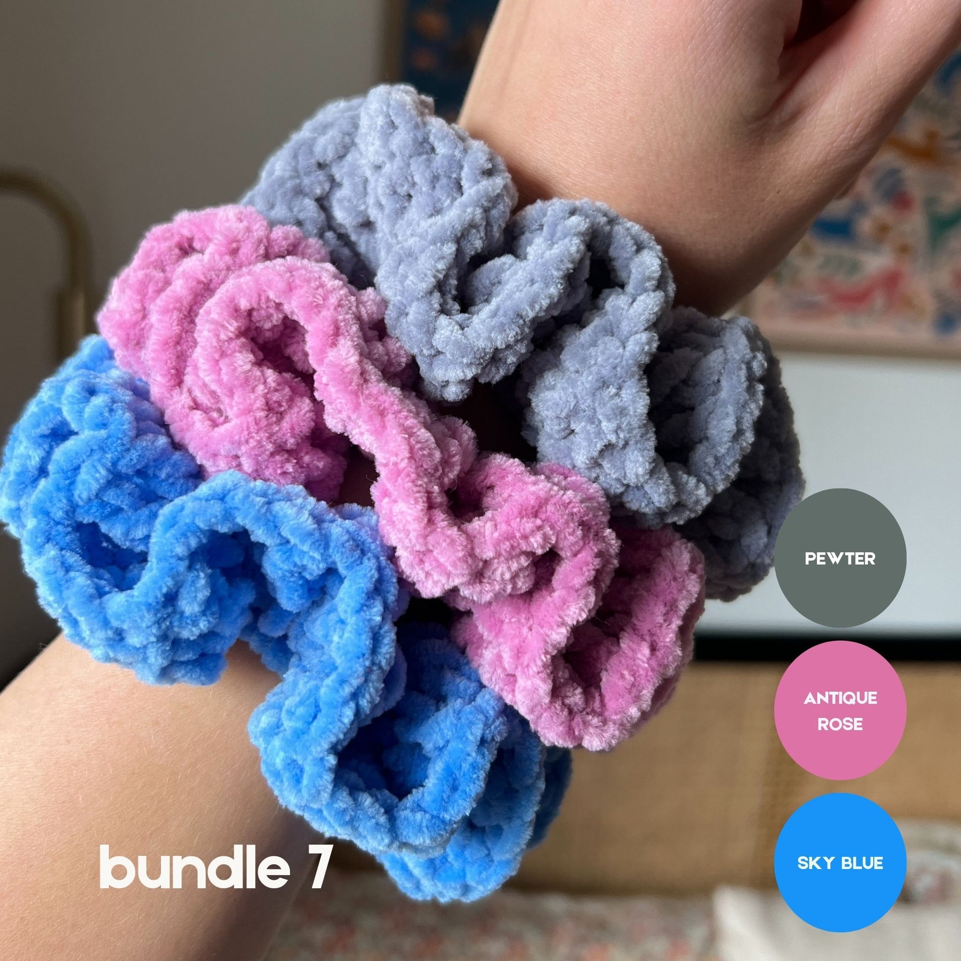 Spoil your hair with the cosiest, prettiest crochet plush scrunchies