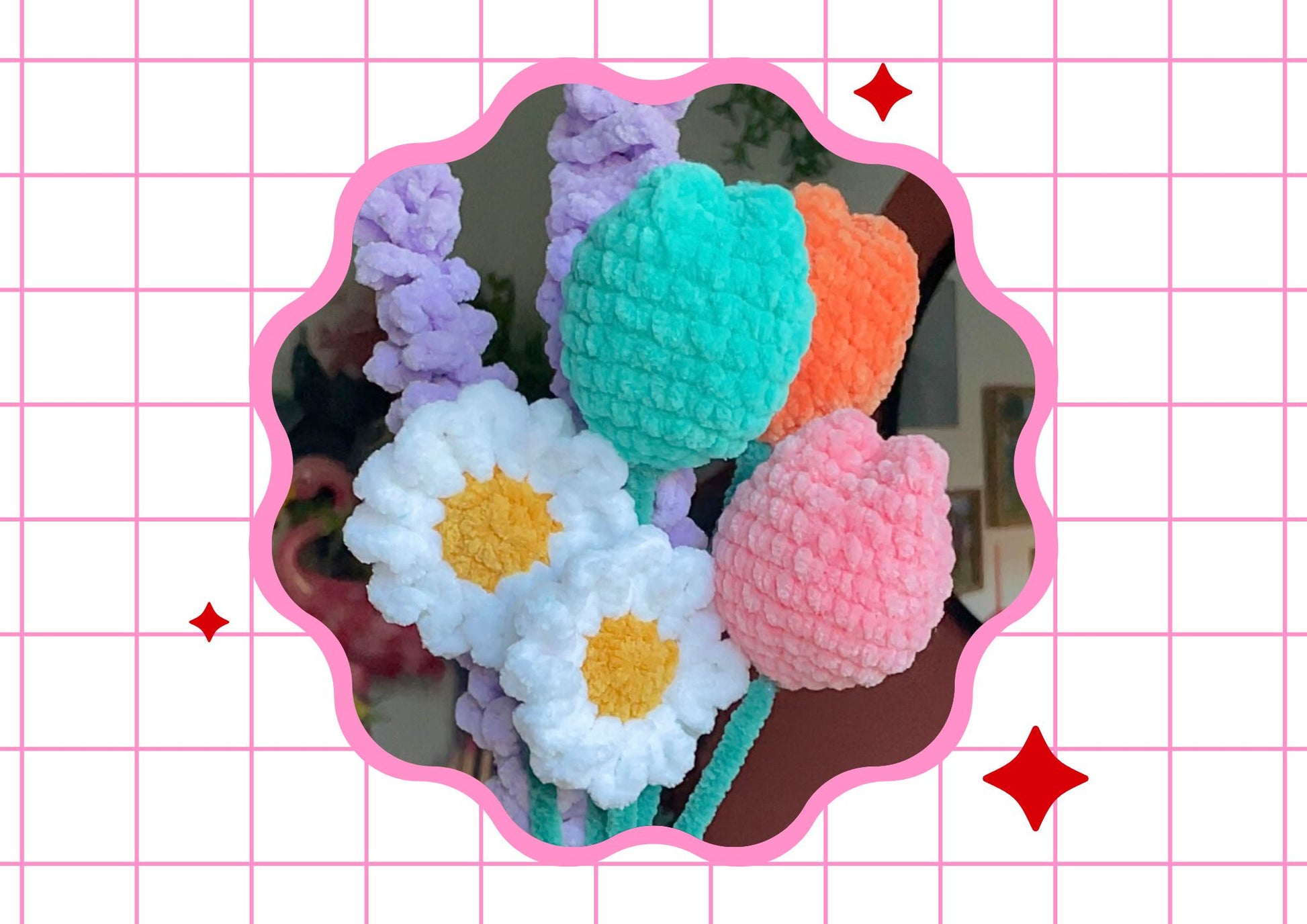 I'm so excited to share my crochet bouquets, made with beautiful chenille yarn & floral wire