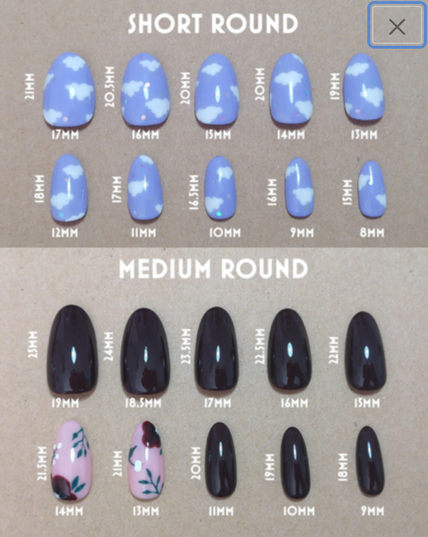 Please check out my YouTube video on how to measure your nails for custom sizing